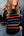Black Colorblock Striped V Neck Knitted Loose Sweater