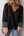 Black Floral Patchwork Textured Knit Drawstring V Neck Blouse