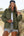 Black Floral Shirred Yoke Bracelet Sleeve Split Neck Boho Blouse