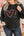 Black Rhinestone Heart Rugby Football Pattern Sequin Patched Sleeve Plus Size Top