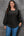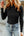 Black Ribbed Texture Lace Trim V Neck Long Sleeve Top