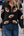 Black Sequin Patchwork Lantern Sleeve Blouse