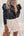 Black Sequin V Neck Zipped Long Sleeve Bodysuit