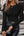 Black Solid Textured Knit Split Cuff Drop Shoulder Loose Sweater