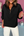 Black Solid Textured Collared V Neck Top and Wide Leg Pants Set