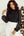 Black Stripe Collared V Neck Long Sleeve Top Plus Shorts Set