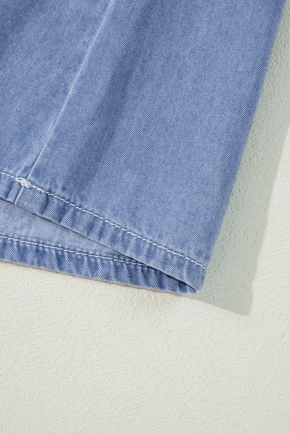 Myosotis Chambray Deep V Neck Bracelet Sleeve Maxi Dress