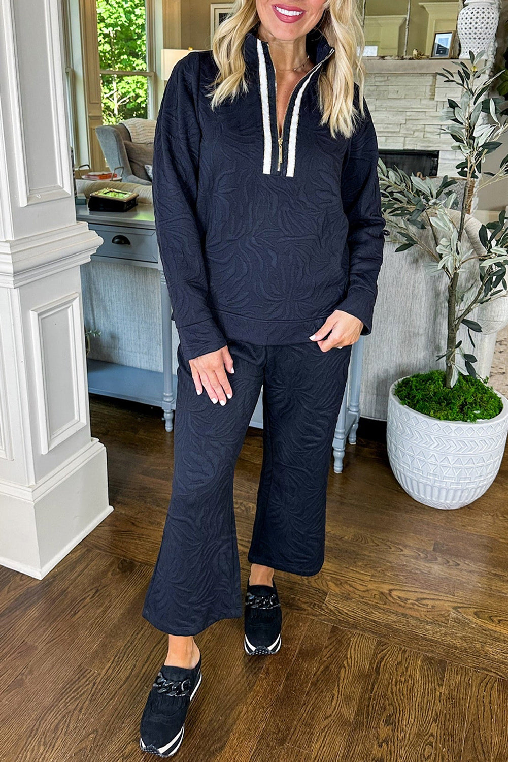 Rose Red Jacquard Textured Quarter Zipper Shift Mini Dress