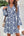 Blue Floral Print V Neck Wrapped Knot Long Sleeve Dress