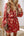 Red Clay Floral Print Shirred Waist Ruffled Trim V Neck Mini Dress