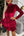 Red Floral Long Puff Sleeve V Neck Hollow Out Dress