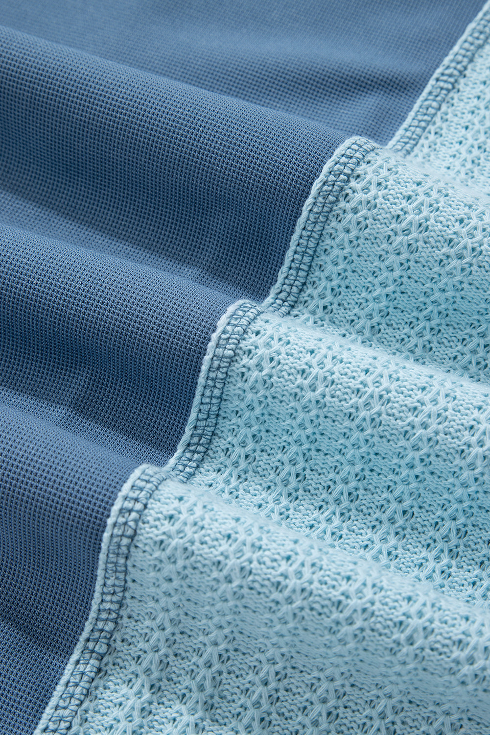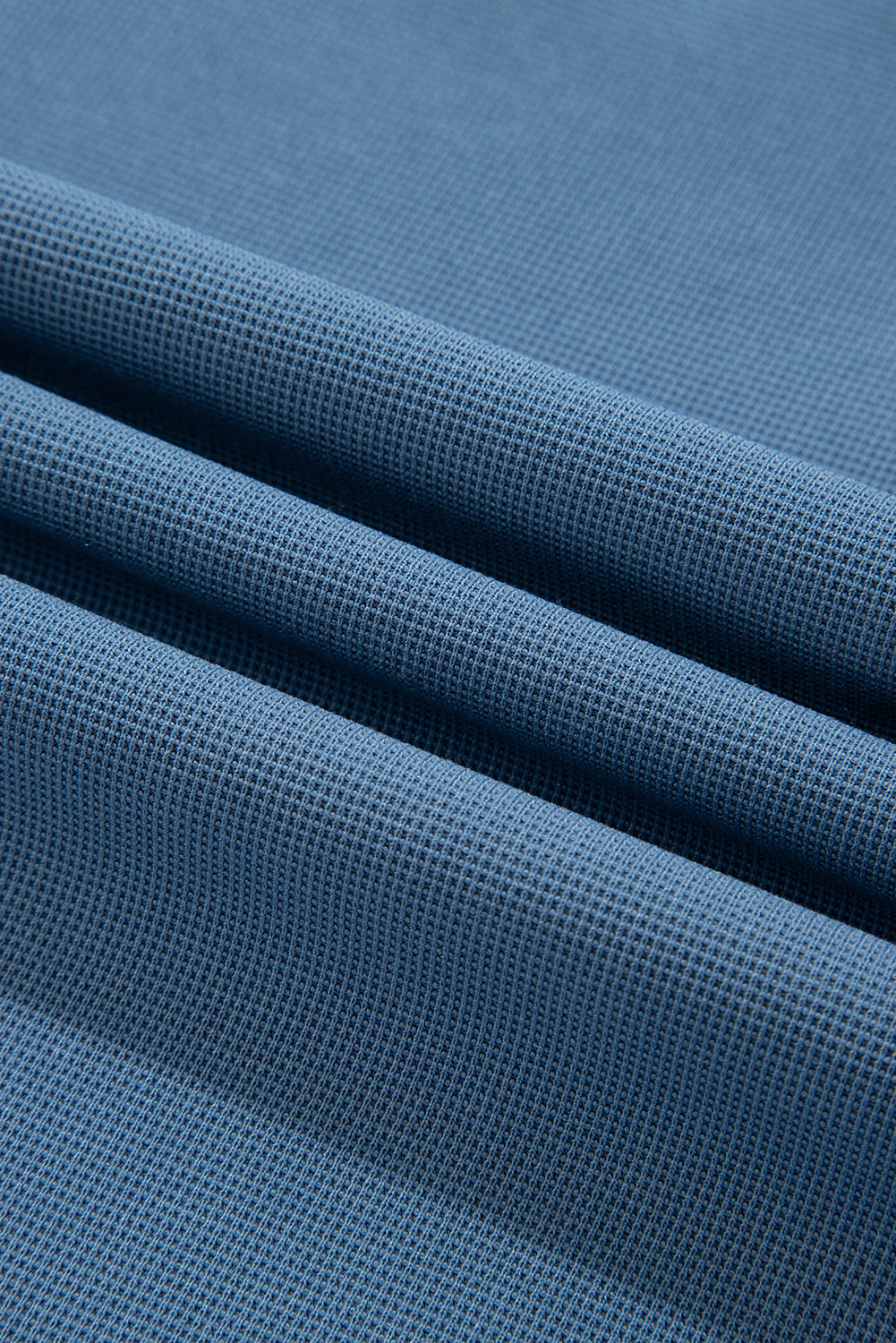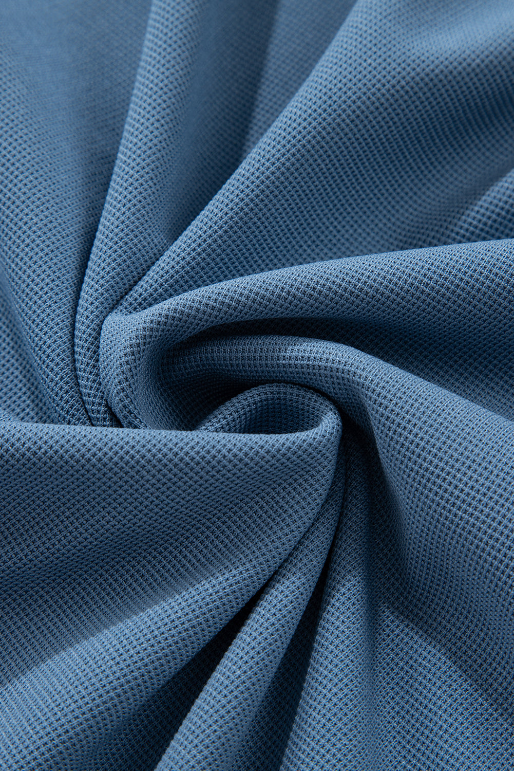 Dusk Blue Colorblock Stitching Patchwork Buttoned Long Sleeve Top