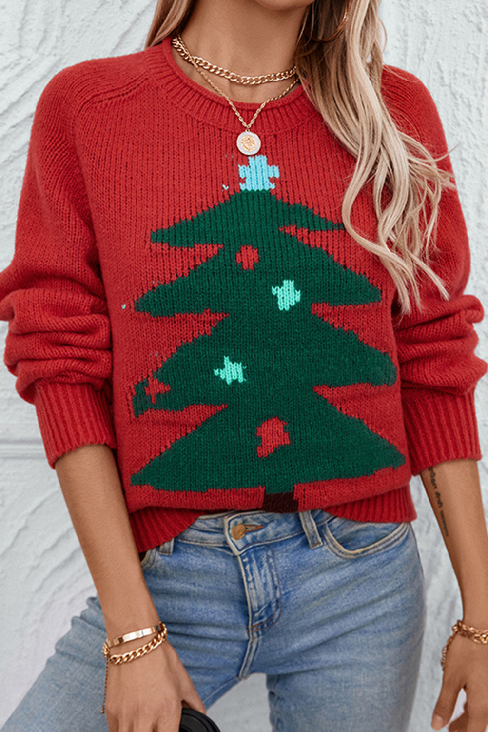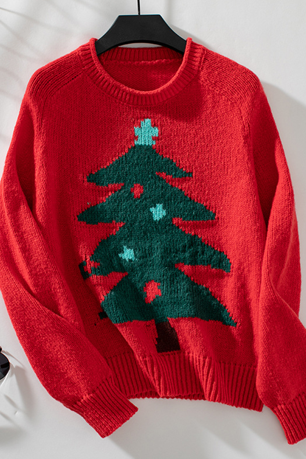 Racing Red Christmas Tree Graphic Crew Neck Sweater