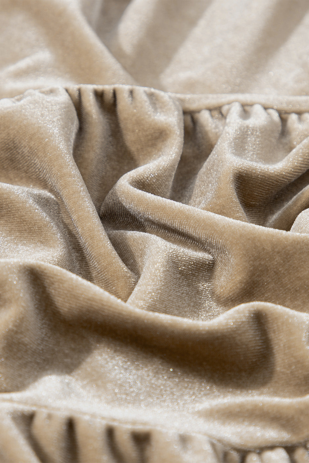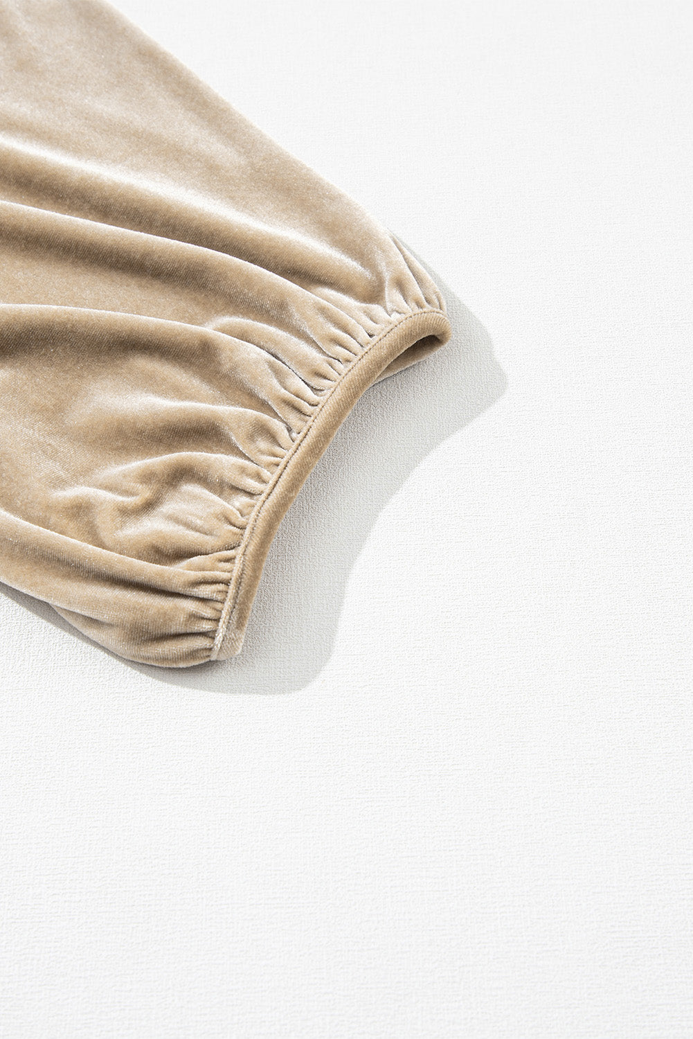 Pale Khaki 3/4 Sleeve Tunic Babydoll Velvet Shirt