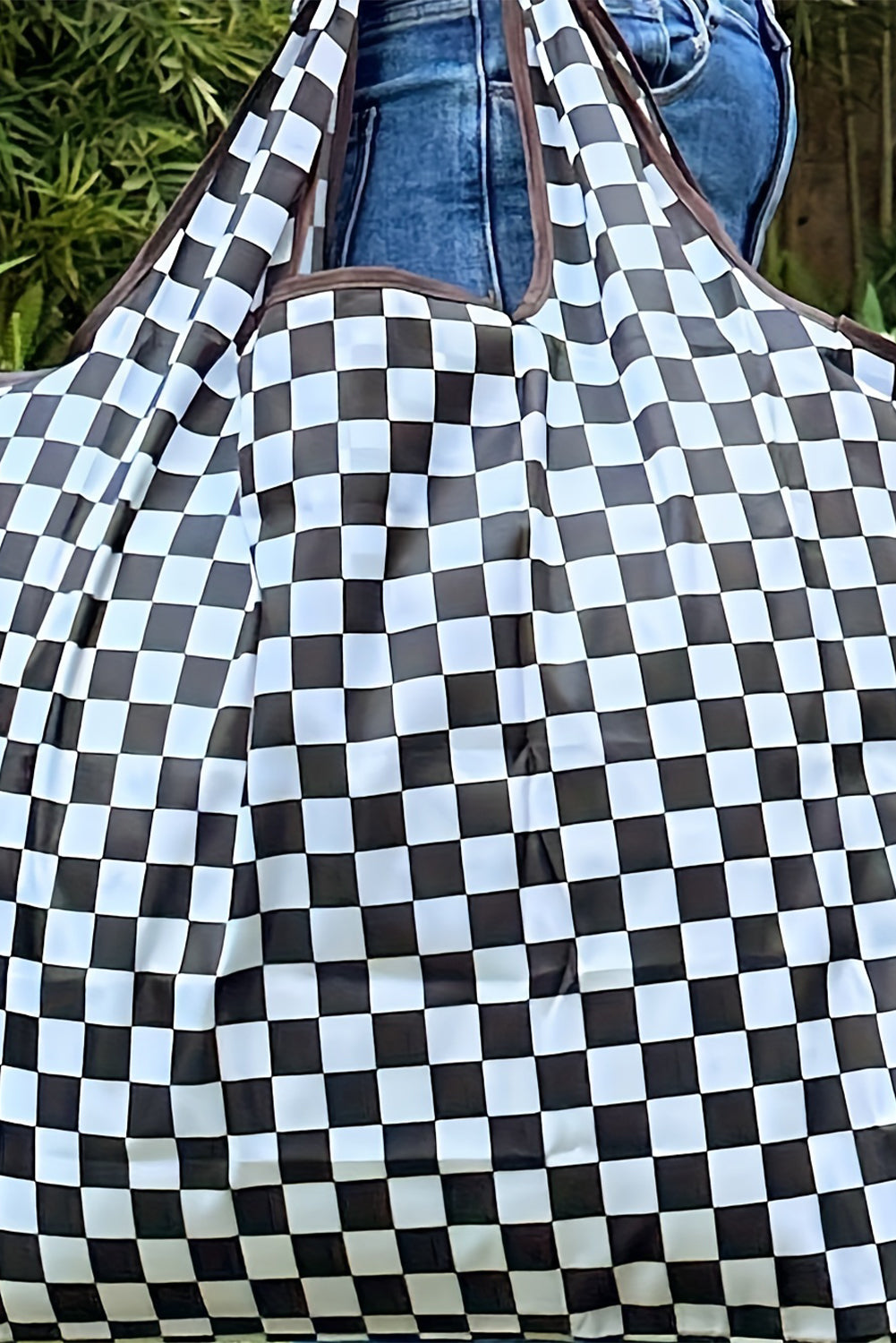 Color black Checkered Print Large Capacity Canvas Shoulder Bag