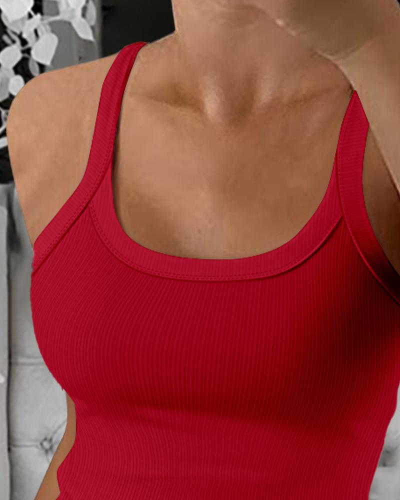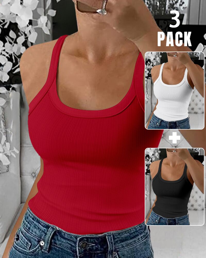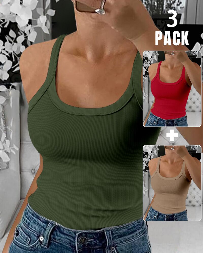 3 Pieces Scoop Neck Spaghetti Strap Ribbed Top Casual Sleeveless Slim Fit Tank
