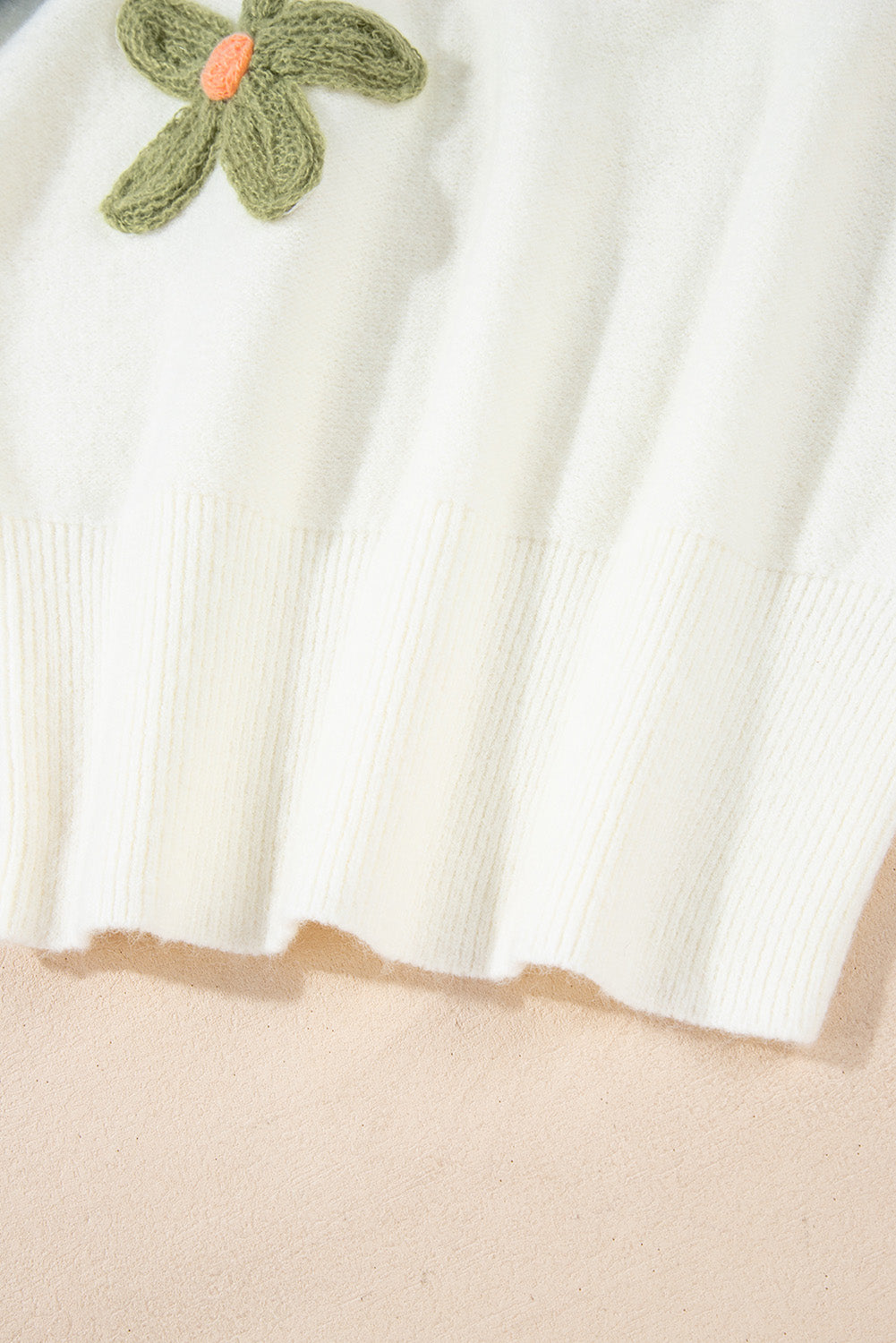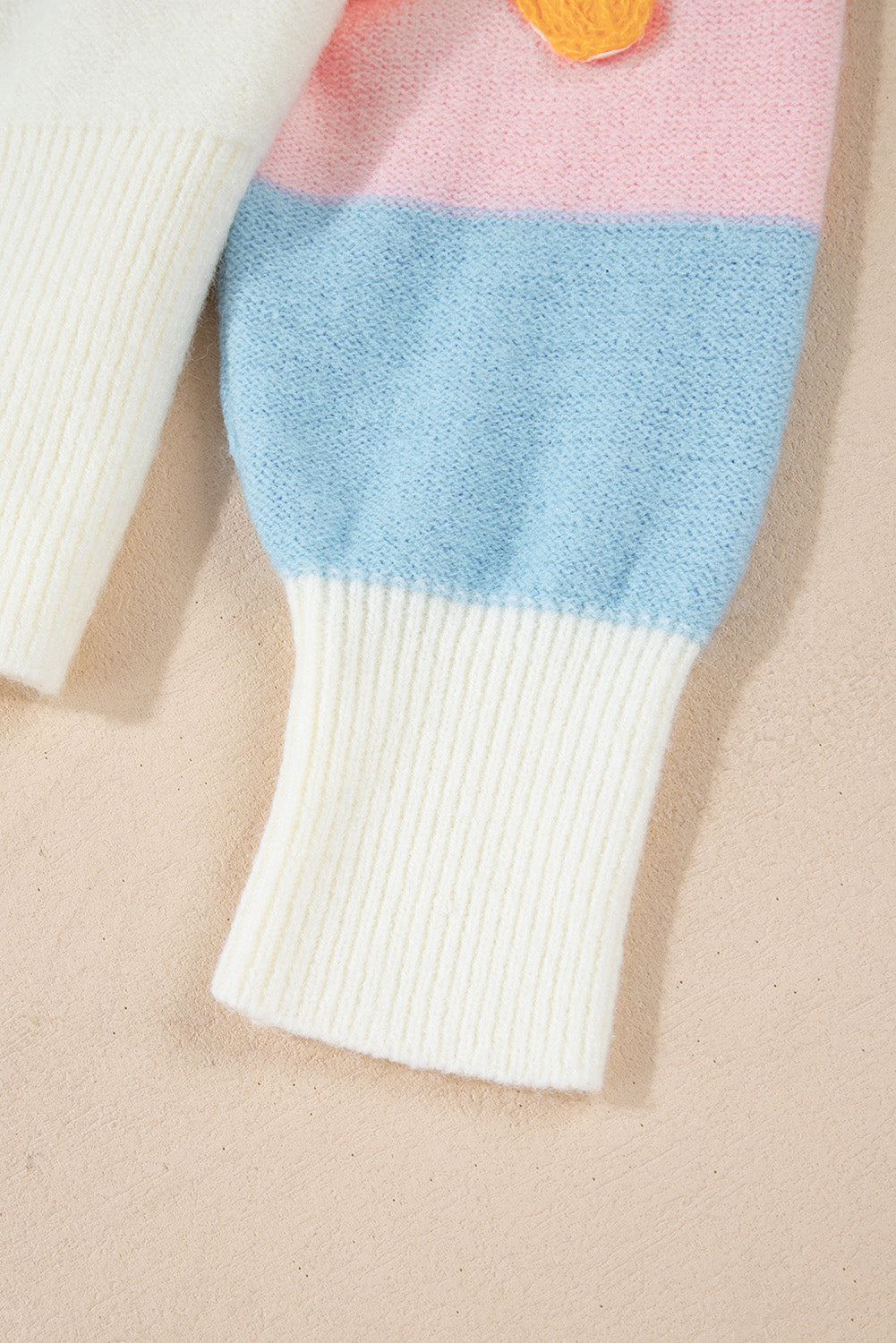 Multicolour Floral Embroidered Colorblock Fuzzy Drop Shoulder Sweater