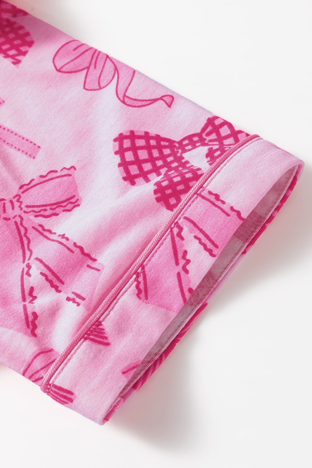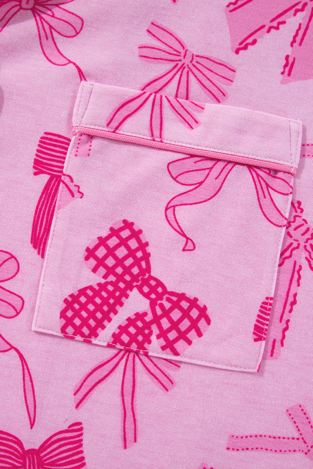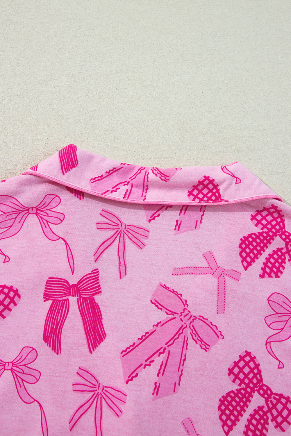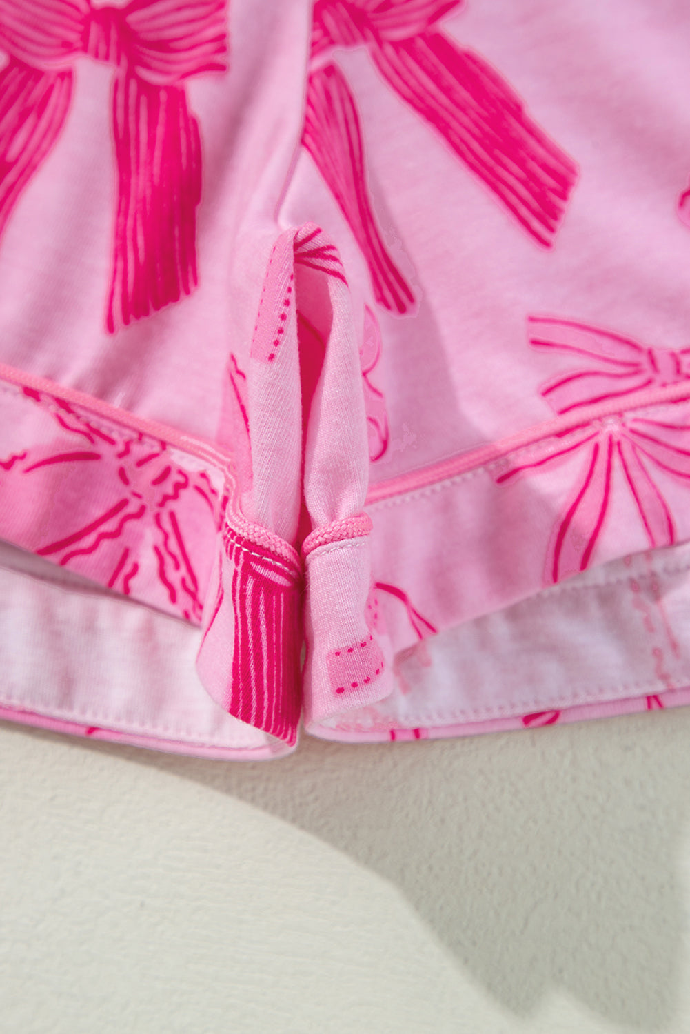 Pink Bow Print Half Sleeve Shirt and Shorts Pajamas Set
