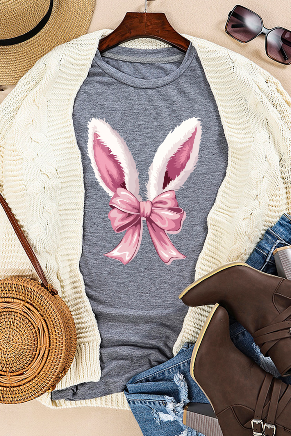 Gray Bunny Ear Bow Printed Easter Fashion T Shirt