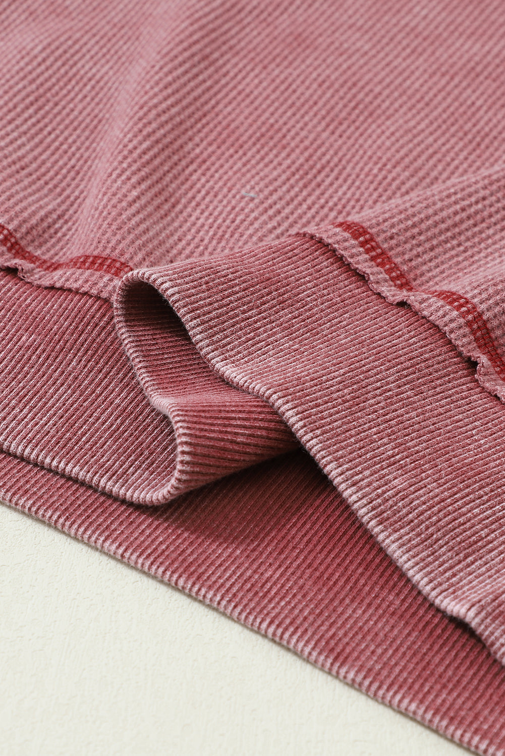 Fiery Red Waffle Knit Raglan Sleeve Henley Sweatshirt