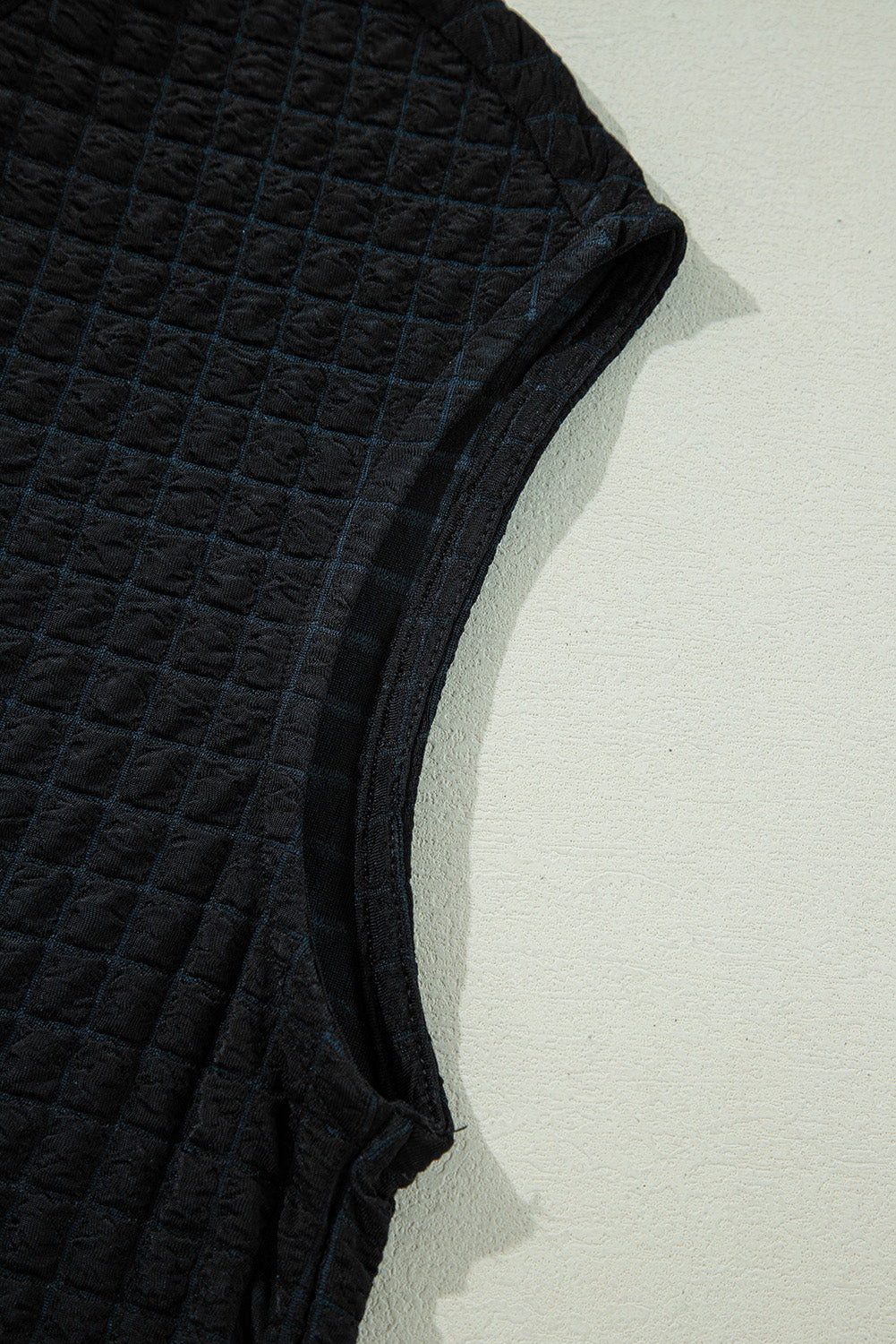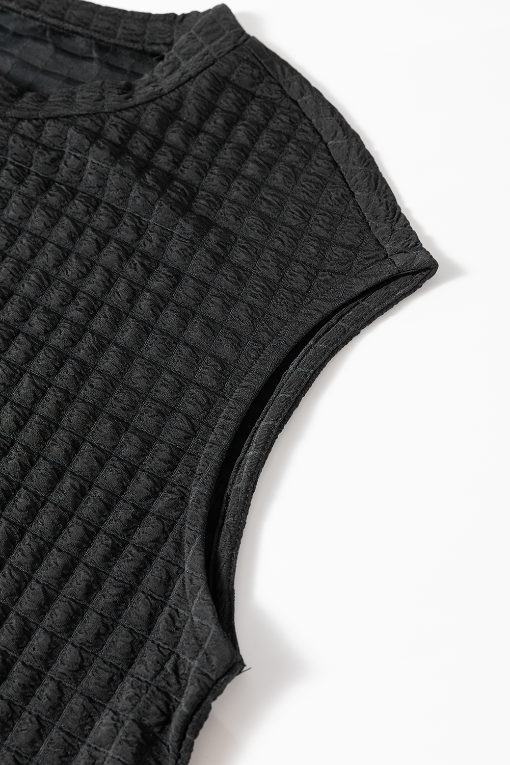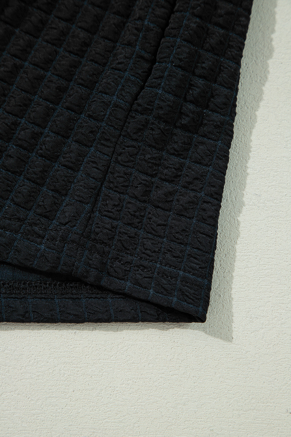 Color black Textured Knit Cap Sleeve T Shirt and Wide Leg Pants Set
