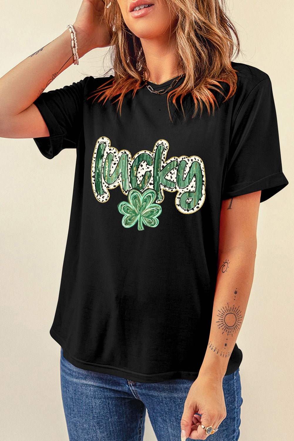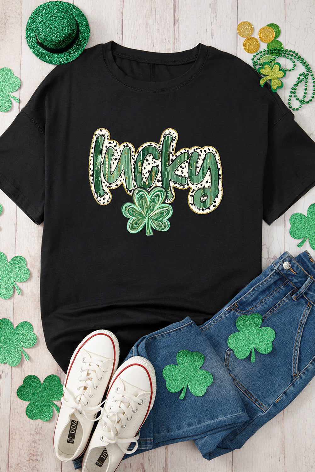Black St Patricks Lucky Clover Pattern Casual T Shirt