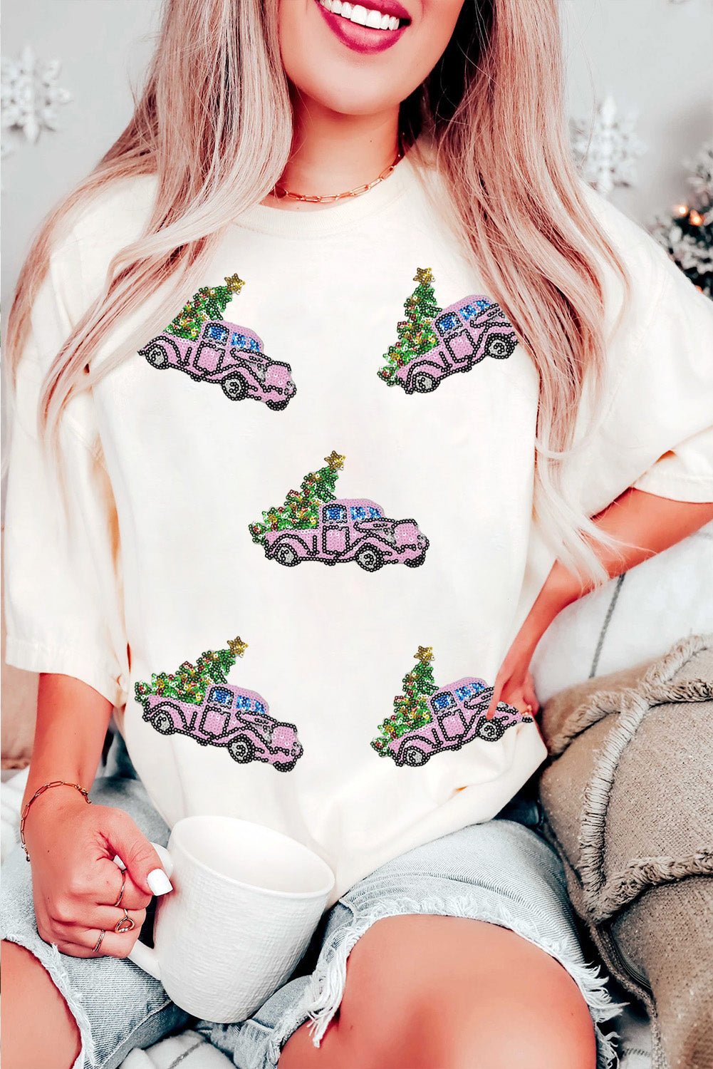 White Truck Christmas Trss Patched Pattern Crewneck Tee