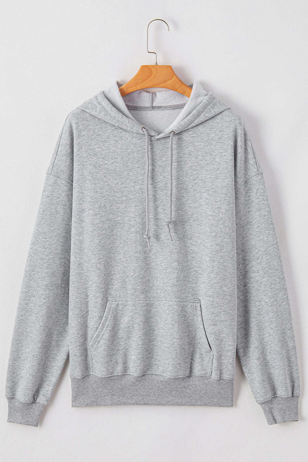 Light Grey Fleece Lined Kangaroo Pocket Drawstring Chunky Hoodie