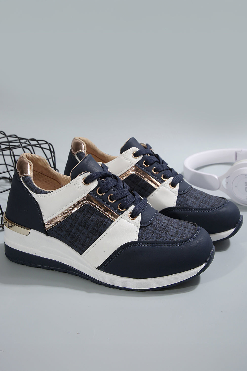 Sail Blue Glitter Patched Lace-up Wedge Sneakers