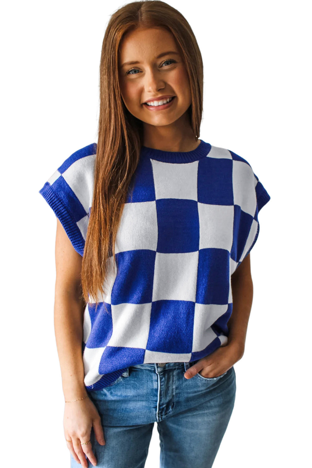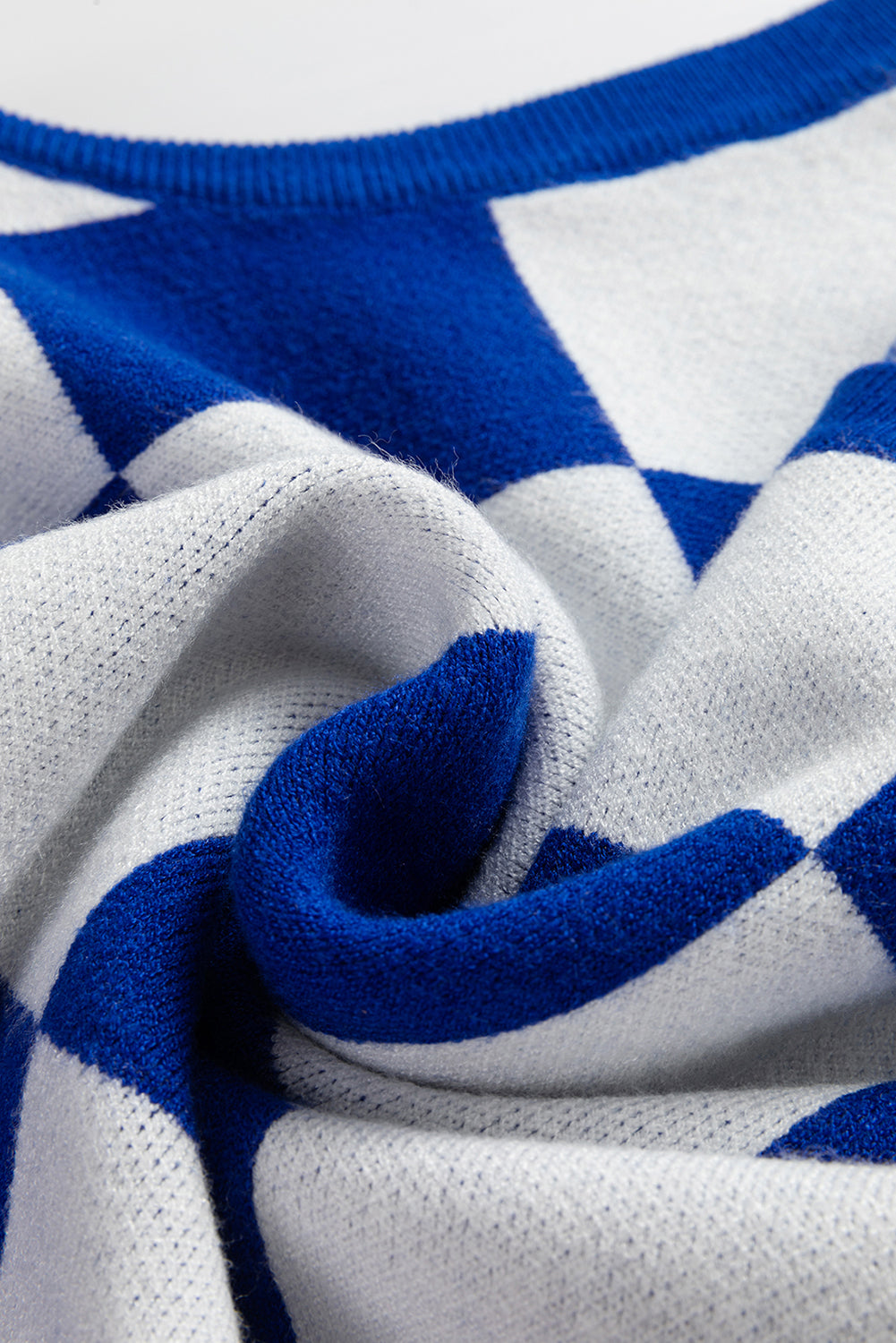 Dark Blue Cherckerboard Round Neck Sweater Vest