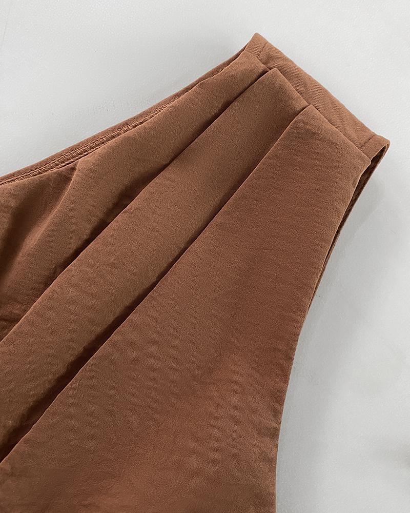 Asymmetrical Neck Sleeveless Ruched Overalls Tied Detail Elastic Waist Jumpsuit