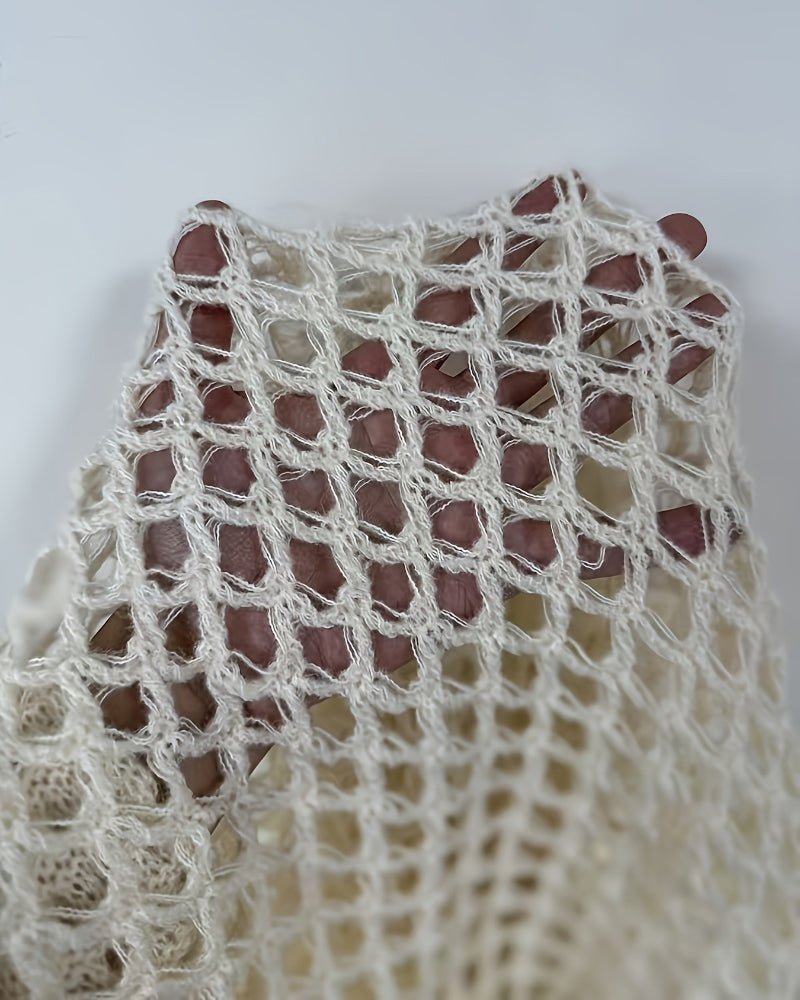 Batwing Sleeve Open Front Hollow out Sweater Coat Casual Asymmetrical Hem Crochet Cardigan