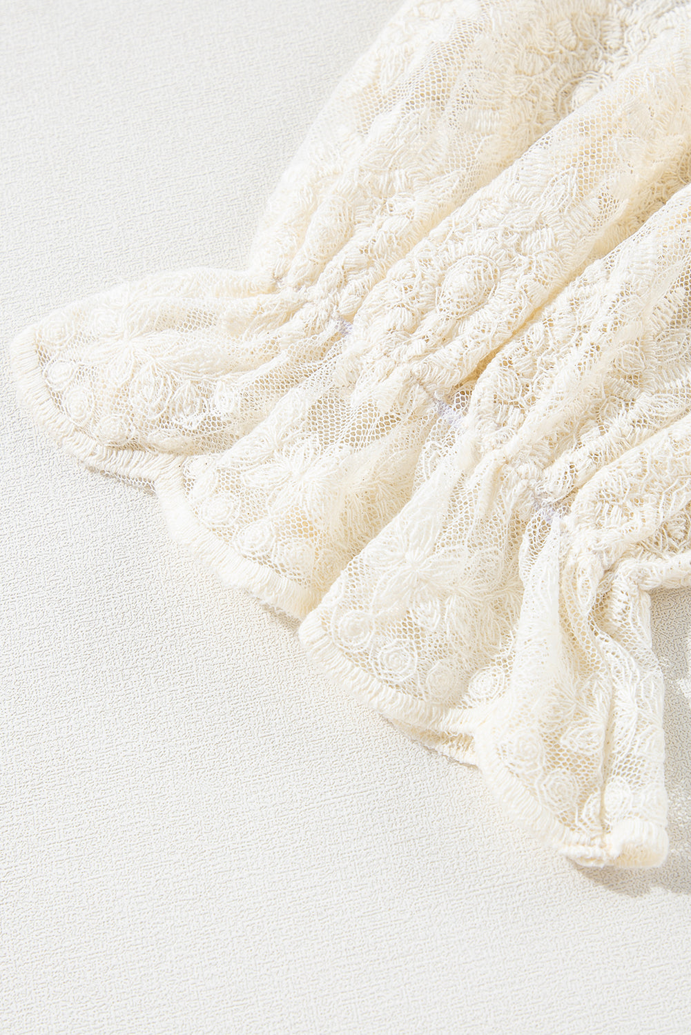 Oatmeal Flower Jacquard Button Back Ruffled 3/4 Sleeve Blouse