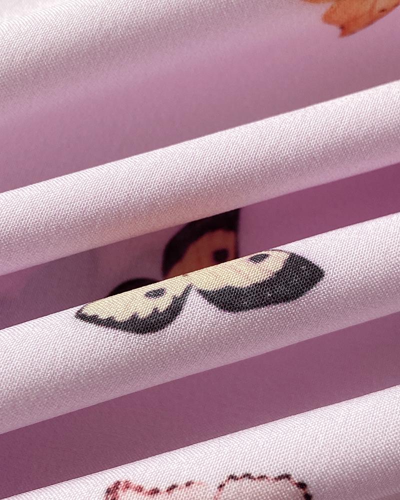 Butterfly Print Off the Shoulder Ruffles Blouse Casual Lantern Sleeve Top