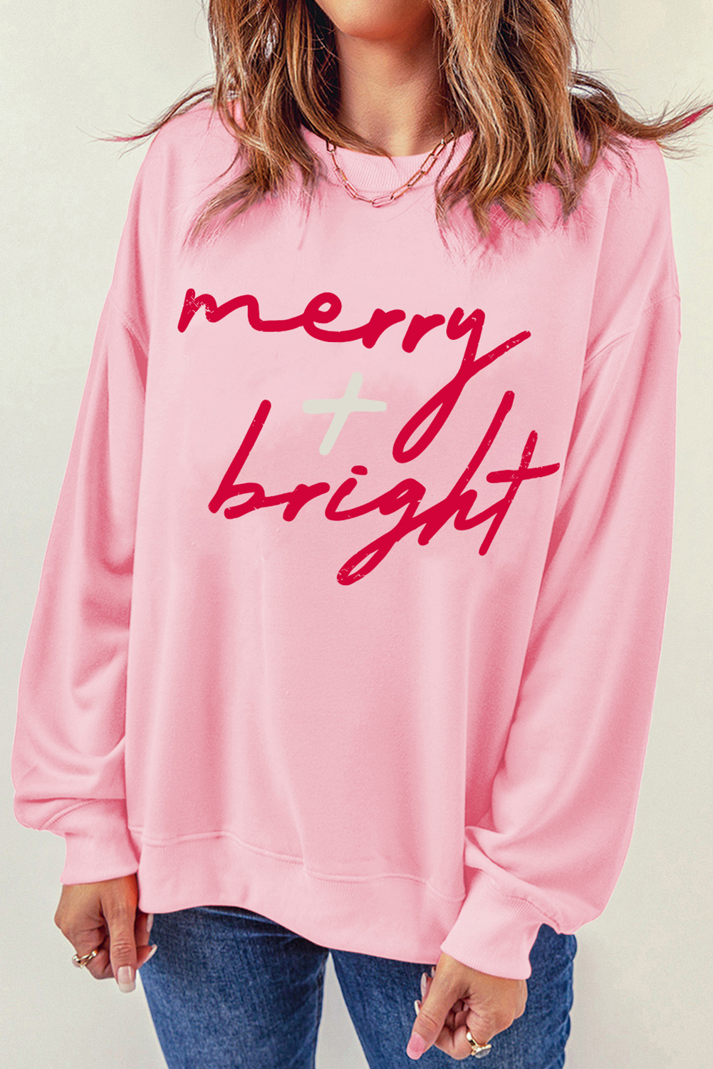 Pink merry + bright Christmas Fashion Graphic Sweatshirt