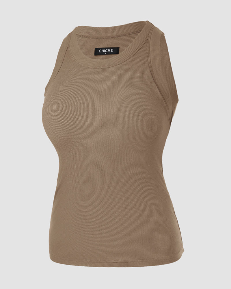 ChicMe Built in Bra Ribbed Round Neck Tank Top