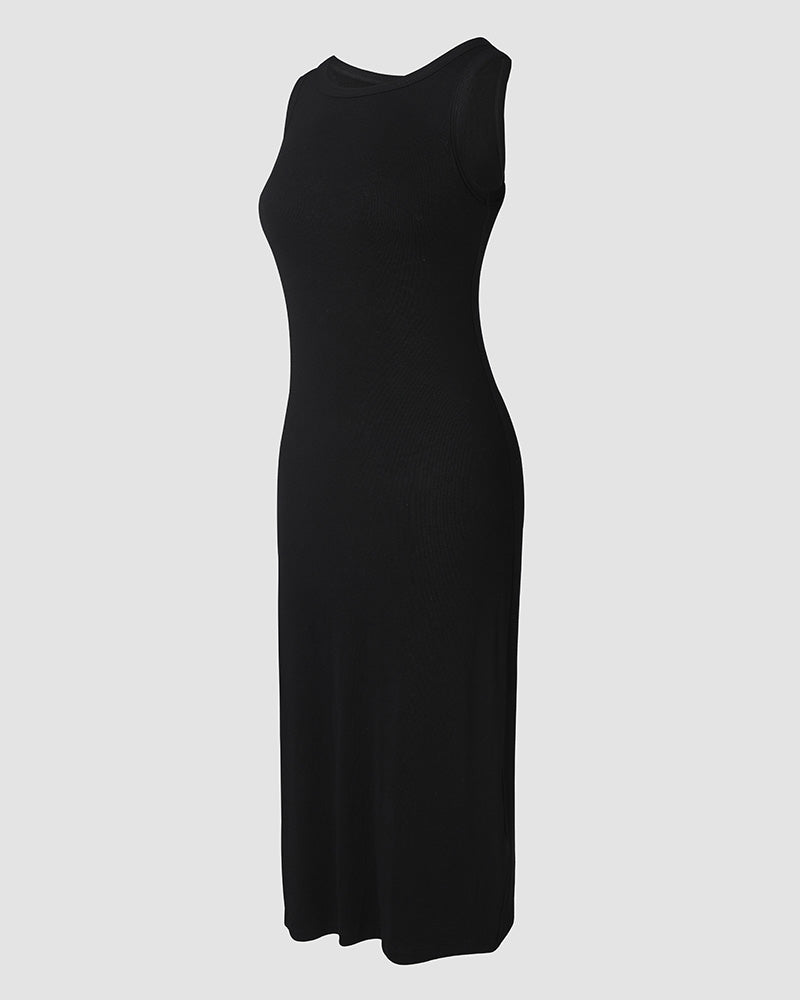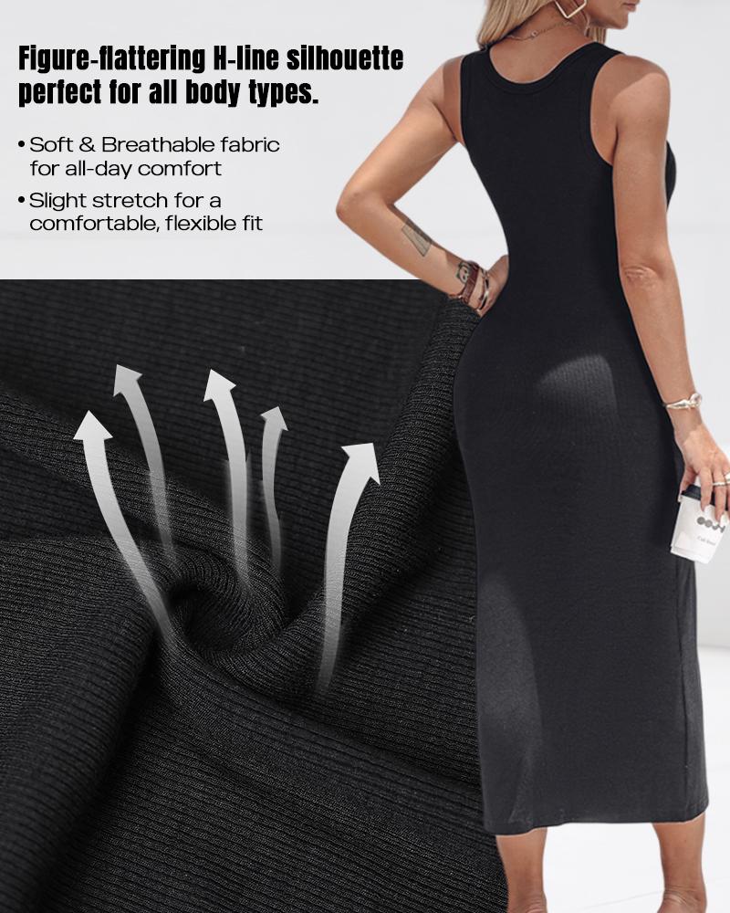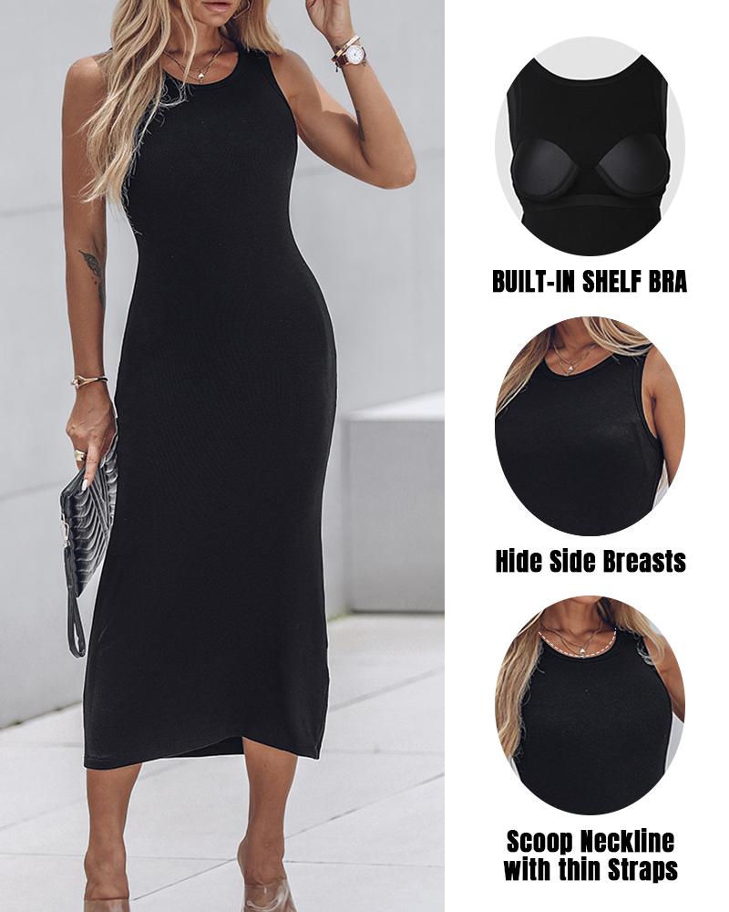ChicMe ShapeSculpt Shapewear Built in Bra Tank Bodycon Dress Sleeveless Crew Neck Slim Casual Ribbed Mid calf Dress