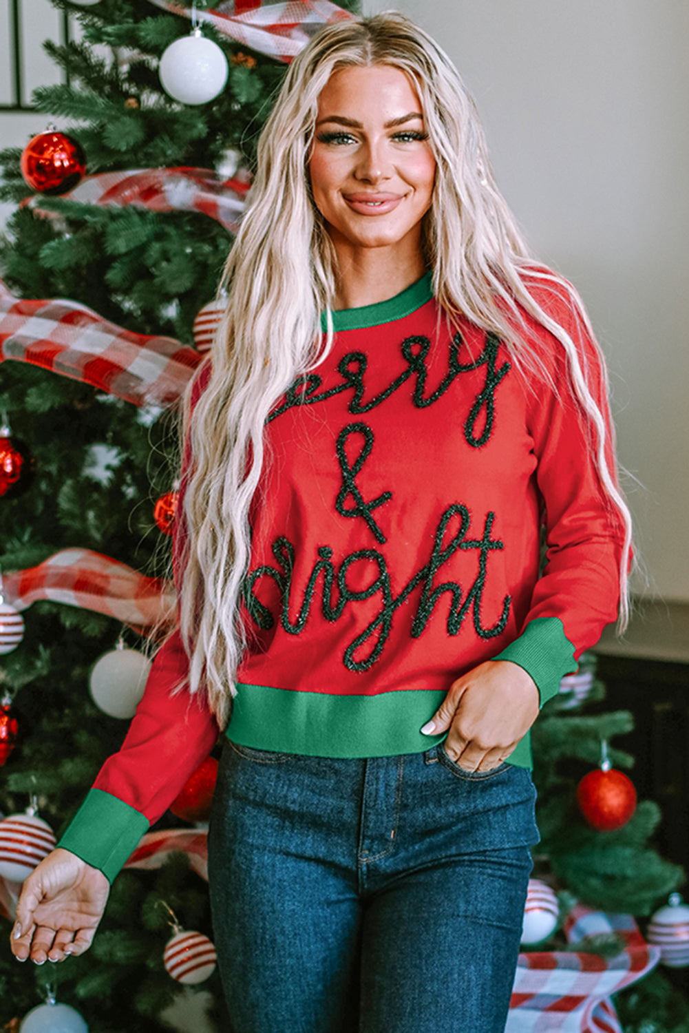 White Merry & Bright Round Neck Casual Sweater