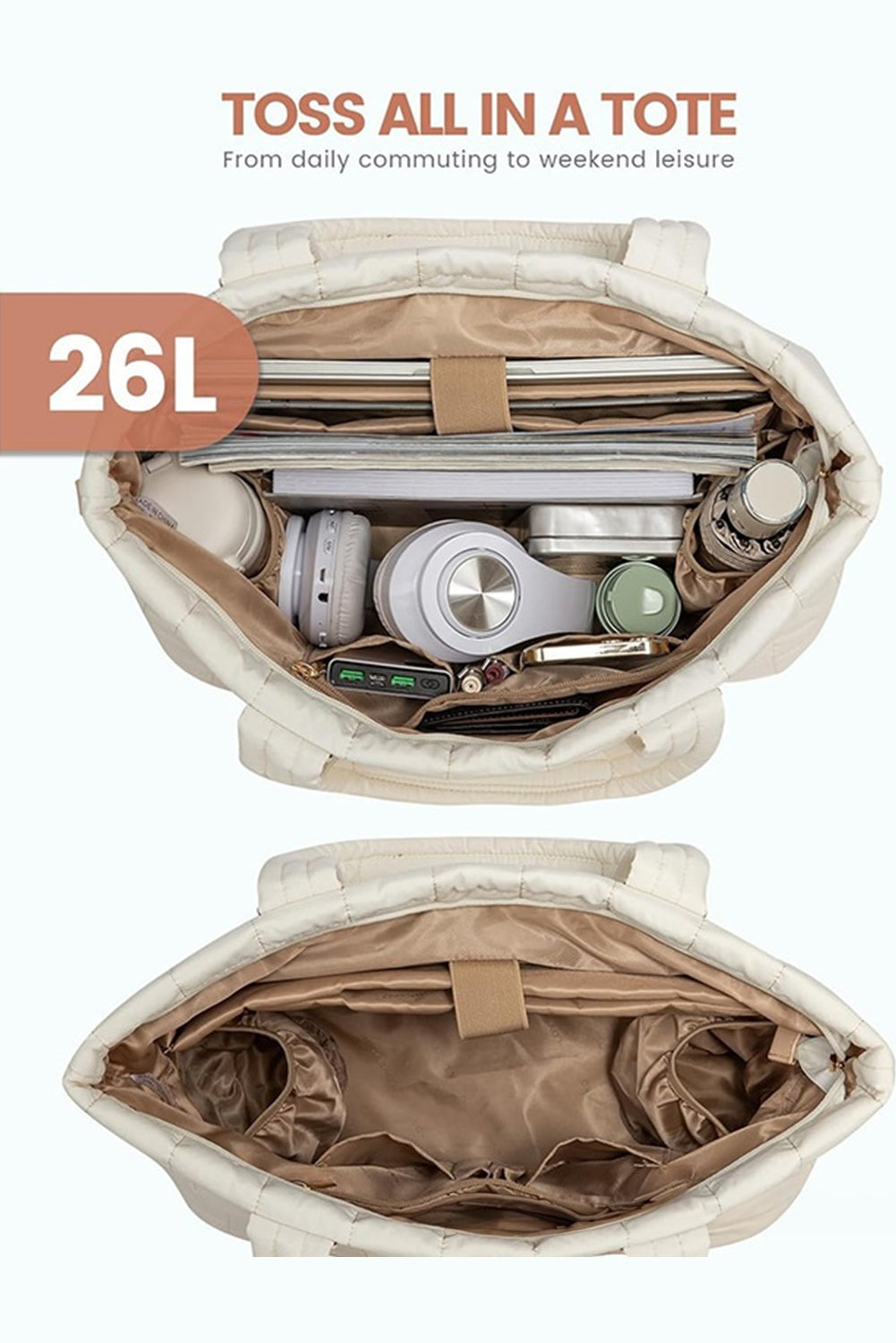 White Quilted Patchwork Large Tote Bag and Clutch 2pcs Set