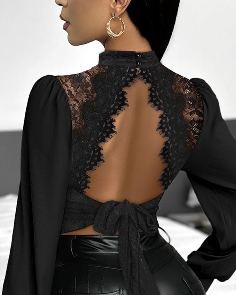 Eyelash Crochet Lace Backless Tied Detail Bodysuit
