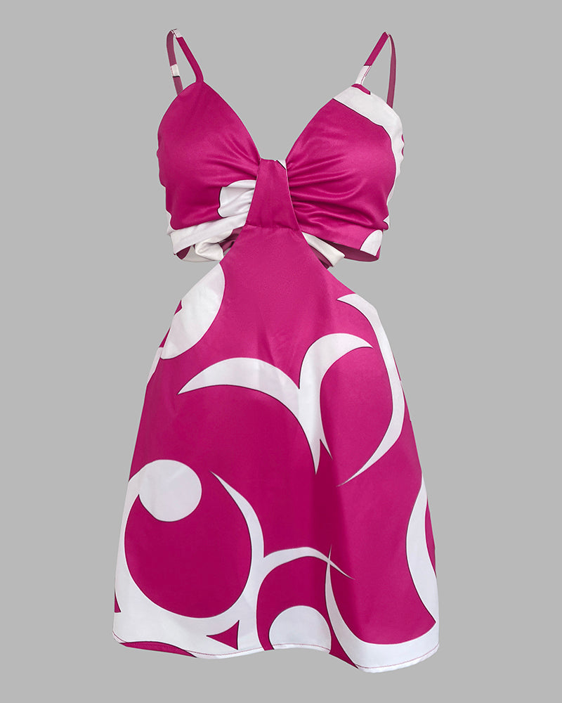 Floral Print Bowknot Decor Spaghetti Strap Skort Romper Casual Hollow out Slim Fit Jumpsuit