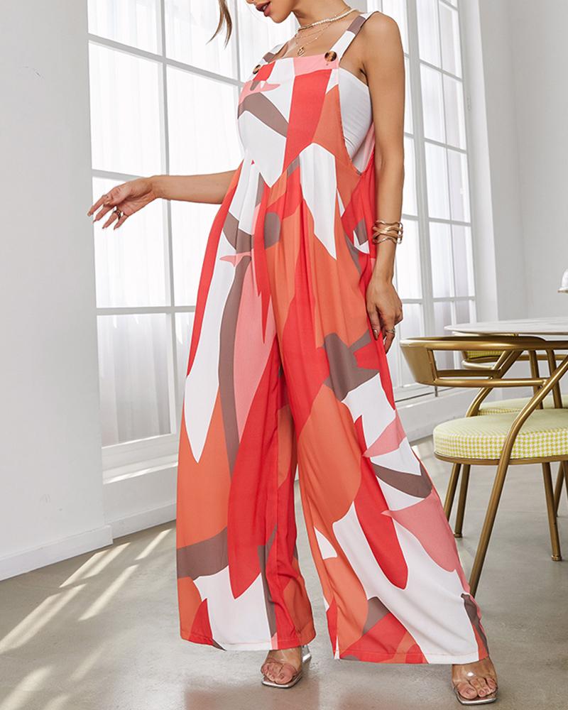 Geo Print Wide Leg Suspender Jumpsuit