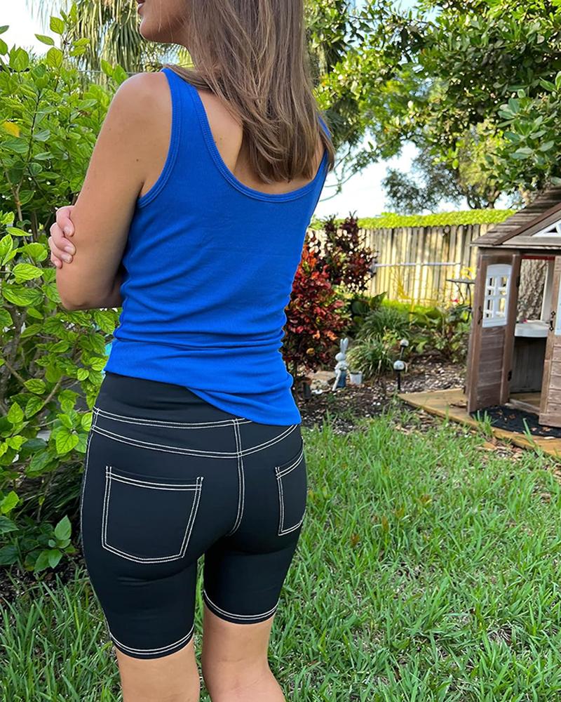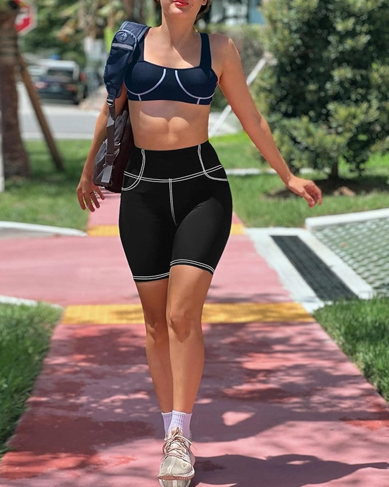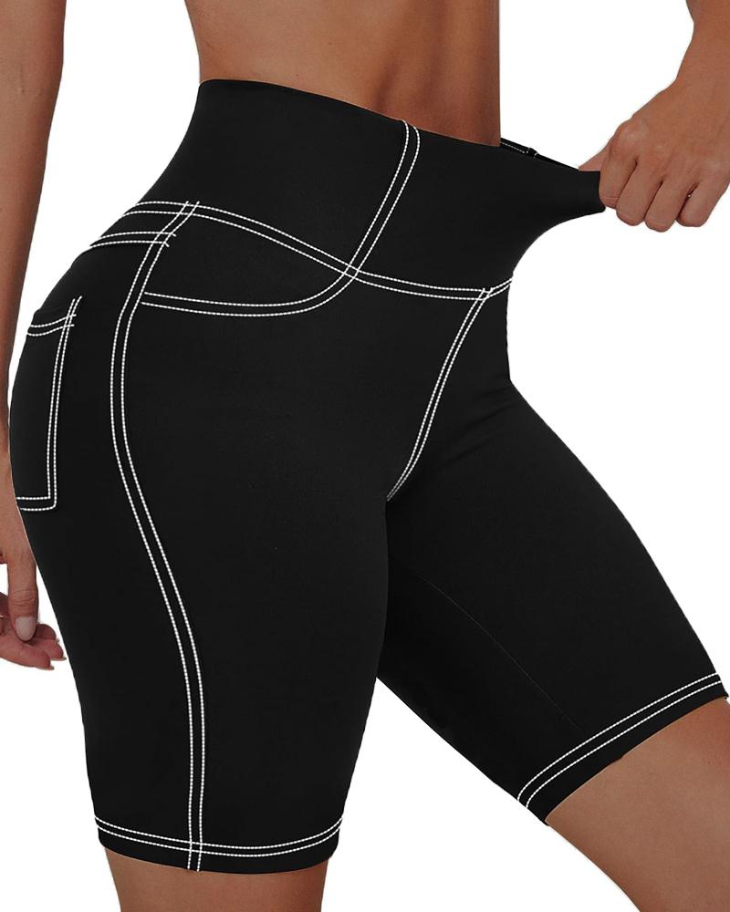 High Waist Yoga Gym Workout Running Shorts Butt Lifting Biker Shorts with Pockets