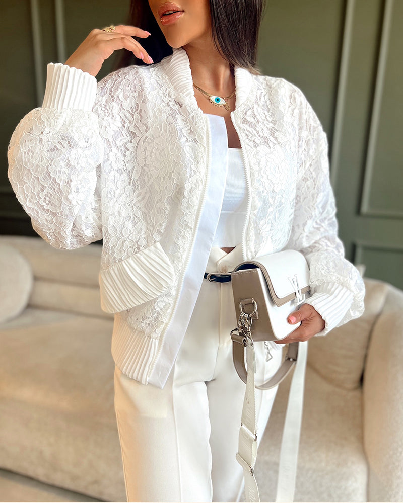 Lace Long Sleeve Pocket Design Jacket Casual Loose Fit Jacket