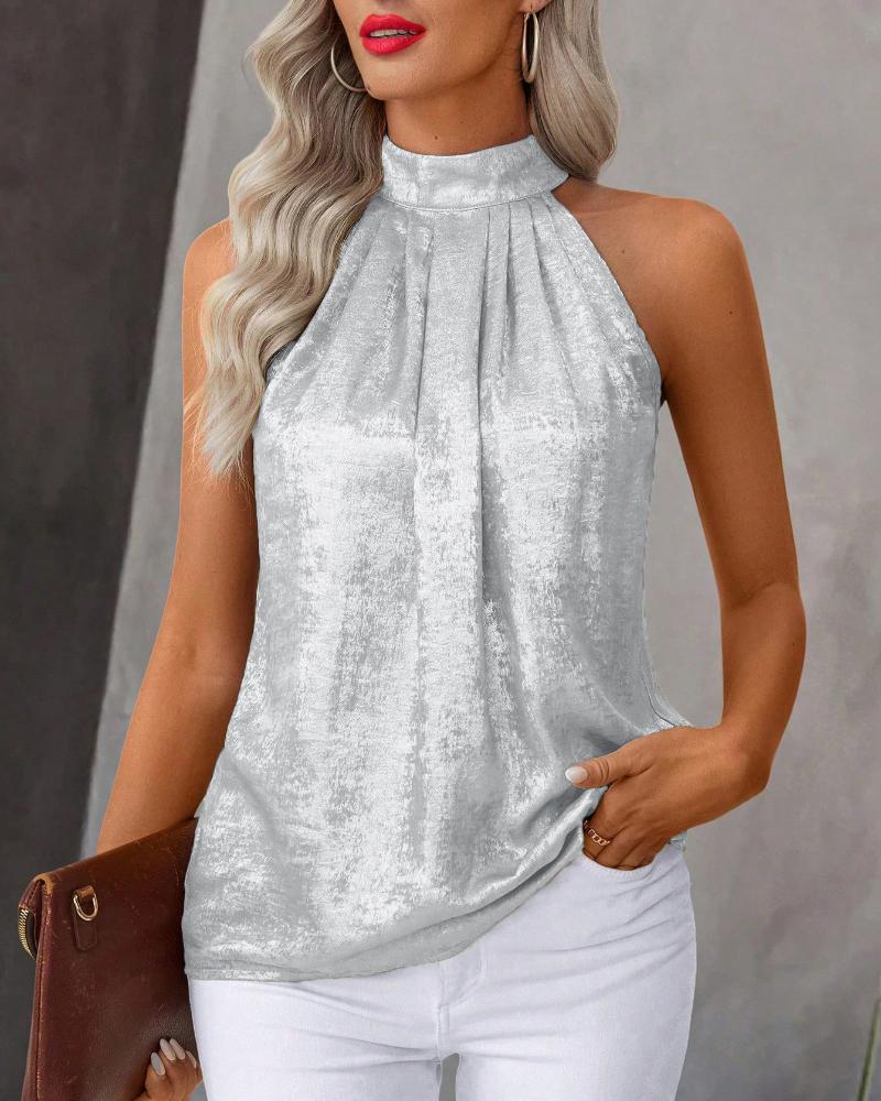 Metal Luster Ruched Halter Neck Blouse Tank Casual Loose Fit Top