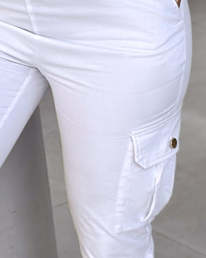 Off Shoulder Zipper Design Top & Cuffed Pants Set