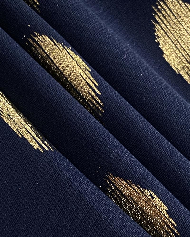 Round Neck Ruffles Short Sleeve Blouse Casual Bronzing Polka Dot Top