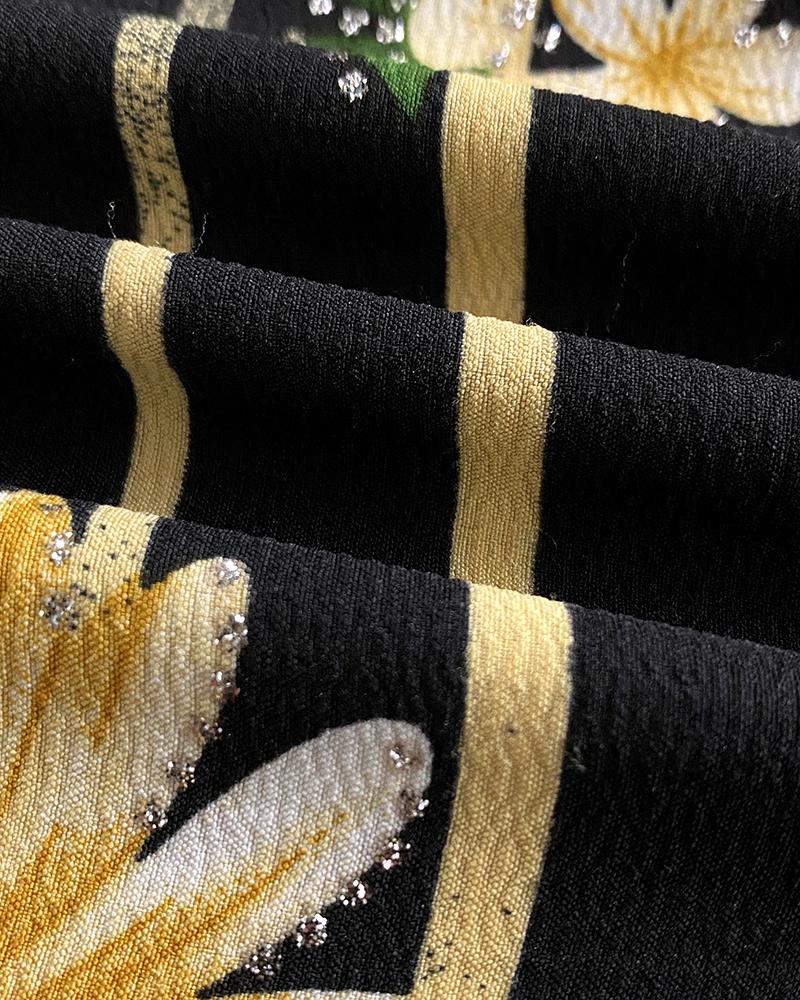 V Neck Halter Tie Back Skirted Hem Romper with Shirred Waistband