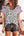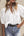 Parchment Crinkle Textured Frayed Trim Half Button Short Sleeve Top