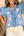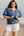 Sail Blue Plus Drawstring V Neck Puff Sleeve Denim Blouse
